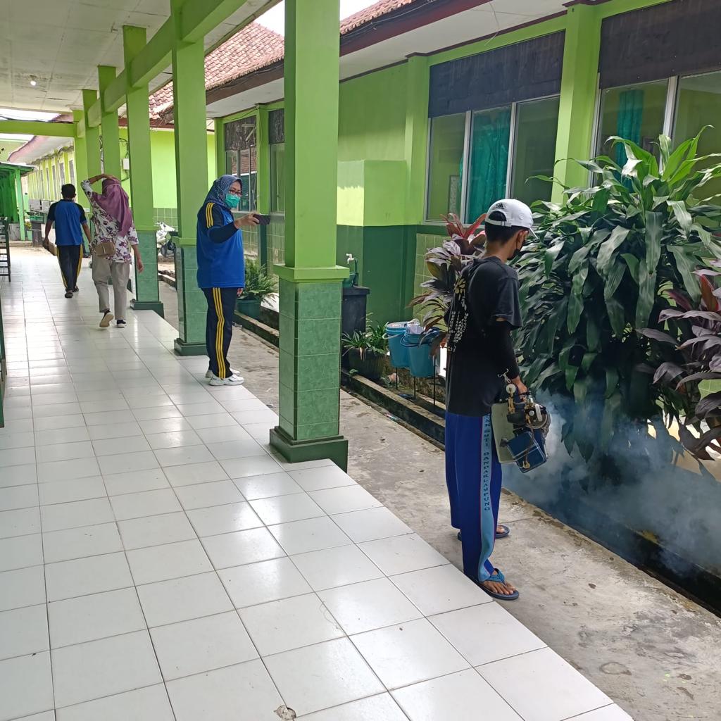 Bandar Lampung MTsN 2 (Inmas). Sabtu, tanggal 6 Agustus 2022 pukul 12.00 WIB. MTs Negeri 2 Bandar Lampung bersama tim Foging Puskesmas Korpri yang di ketuai oleh Ibu Keriyati selaku Kepala Sanitasi Lingkungan dari Puskesmas Korpri turun mengadakan Foging (Pengkabutan) sebagai antisipasi terkait dengan wabah DBD Yang sedang melanda Kota Bandar Lampung dan sekitarnya. Madrasah berupaya memberi kenyamanan pada seluruh siswa dalam menerima pembelajaran di kelas maupun di lingkungan madrasah. Dalam hal ini MTs Negeri 2 Bandar Lampung bersama dengan Puskesmas Korpri melaksanakan program ini untuk membasmi nyamuk demam berdarah yang saat ini sedang melanda.