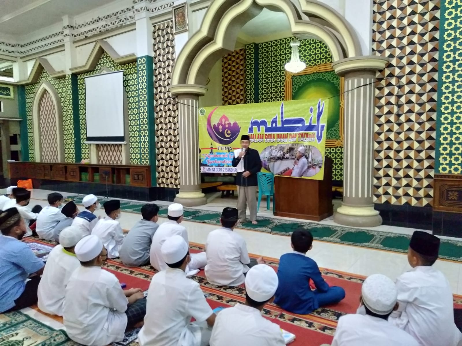 Bandar Lampung MTsN 2 (Inmas). Sabtu, tanggal 19 Maret 2022 Kelas Unggul dan Khusus MTs Negeri 2 Bandar Lampung menggelar kegiatan MABIT(Malam Bina Iman dan Taqwa) perdana untuk kelas 7A, 7B, 7C, 7U1 dan 7U2 yang diikuti oleh 142 siswa. Kegiatan mabit perdana ini digelar pada hari sabtu dan ahad tanggal 19 s.d 20 Maret 2022. Acara dilakukan secara tatap muka dengan menerapkan protokol kesehatan.
