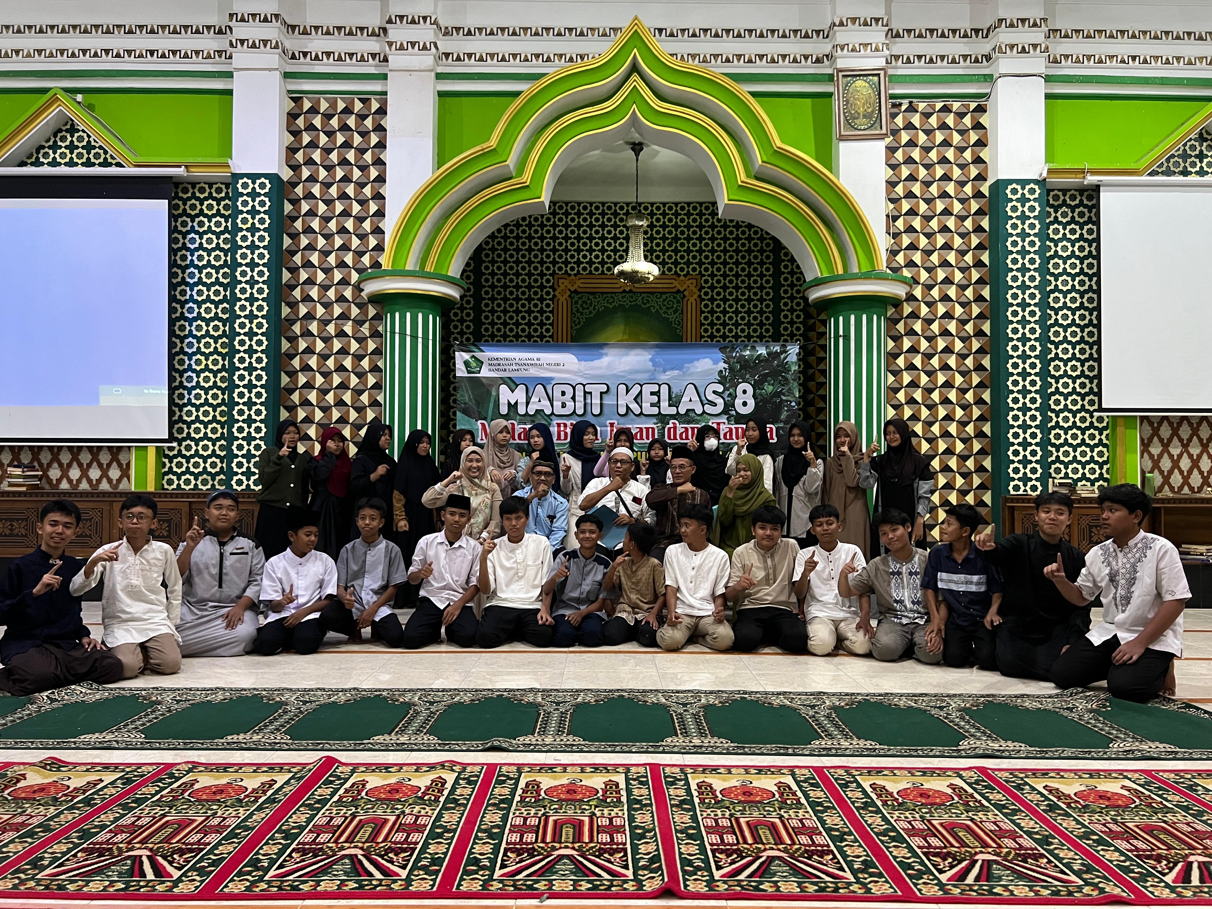 Bandar Lampung, MTsN 2 (Humas)--MTs Negeri 2 Bandar Lampung melaksanakan kegiatan Malam Bina Iman dan Taqwa (Mabit) bagi siswa kelas VIII reguler di Masjid At Thalibin pada hari Sabtu dan Ahad, 21-22/9/2024. Acara ini diikuti oleh 245 siswa, yang didampingi wali kelas dan beberapa guru yang terlibat dalam kepanitiaan. Kegiatan ini diketuai oleh Sepriwan yang mewakili Kepala MTs Negeri 2 Bandar Lampung, Nasron, dalam pembukaan acara tersebut.